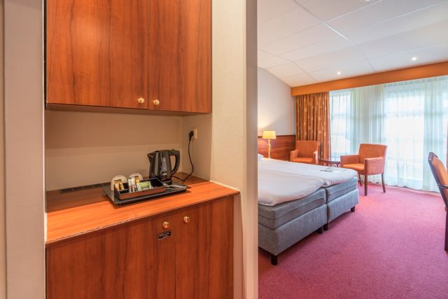 Deze comfortkamer is van alle gemakken voorzien en hier kun je optimaal van een goede nachtrust genieten. De kamer beschikt over twee eenpersoons boxspringbedden, een zitje met LCD-TV, minibar, gratis koffie- en thee faciliteiten en een badkamer met bad en/of douche, toilet en wastafel. De kamer heeft een klassieke inrichting en beschikt over een Frans balkon. Zodra je de deuren openslaat, geniet je van een prachtige bosrijke omgeving.