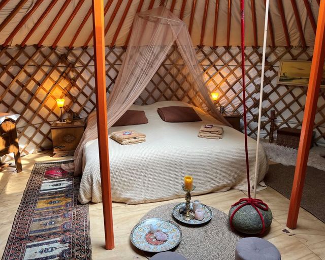 Op het terrein ligt een mini-natuurkampeerterrein met plek voor ongeveer zeven tenten, een kampvuurplek en picknicktafels. Tussen de bomen staat ook een authentieke Mongoolse yurt. Vanuit de boerderij wandel je zo de Compagnonsbossen in en fiets je richting het Drents-Friese Wold en het Fochteloërveen.