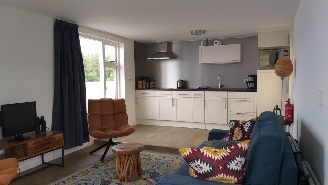 Woonboot De Wulp beschikt over een gezellige woonkamer met open keuken, een slaapkamer met twee elektrisch verstelbare bedden en een badkamer. Buiten vind je een ruime tuin met een vernieuwd vlonderterras. Gelegen aan het water, biedt de woonboot een prachtig uitzicht.