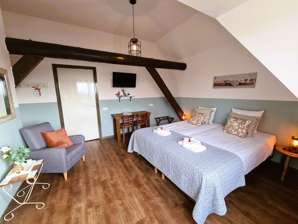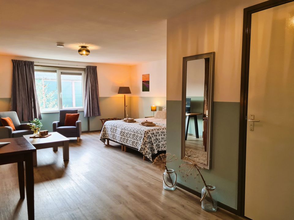 De groepsaccommodatie is geschikt voor 11 personen, verdeeld over vier ruime slaapkamers met een eigen badkamer en er is een gezamenlijke woonkeuken. De woonkeuken is van alle gemakken voorzien en beschikt onder andere over ruime koelkast, magnetron en vijfpits keramisch fornuis. Vanuit de keuken loop je zo het ruime terras op waar je heerlijk kunt genieten van de zon. Drie slaapkamers zijn geschikt voor drie personen en een slaapkamer is geschikt voor twee personen. Alle kamers hebben een tv, een zitje en een hoge tafel om eventueel aan te werken.