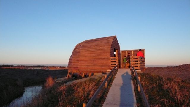 Deze kijkhut is in 2008 ontworpen en gebouwd door leerlingen van het Simon Vestdijk College in Harlingen en de Praktijkopleiding Bouw in Leeuwarden. De hut heeft de vorm van een boothuis met ronde boeg. Meer dan 30 vogelsoorten broeden hier, waaronder scholekster, kluut, gele kwikstaart en bontbekplevier. In het voorjaar zijn er in het Hegewiersterfjild kemphanen te zien en in de winter veel ganzen, smienten en tafeleenden.