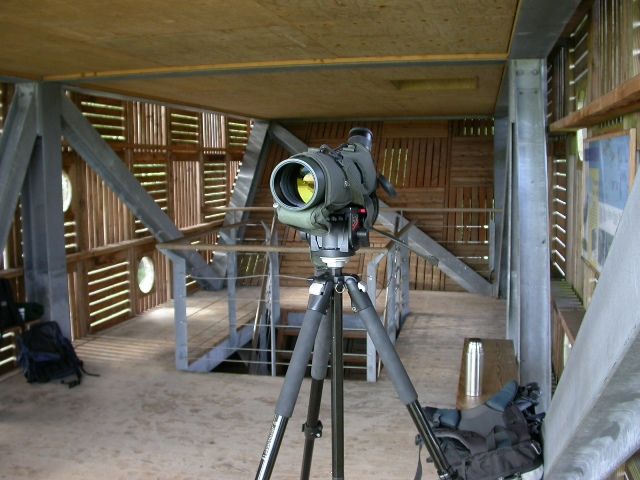 Vanuit deze fraaie kijktoren zijn in het veengebied van tijd tot tijd kraanvogels te zien (soms zelfs met jongen). Ook zijn hier behalve de vele boomvalken in de zomermaanden soms ook roodpootvalken en een enkele slangenarend waar te nemen. Het gebied is rijk aan reptielen en libellen.