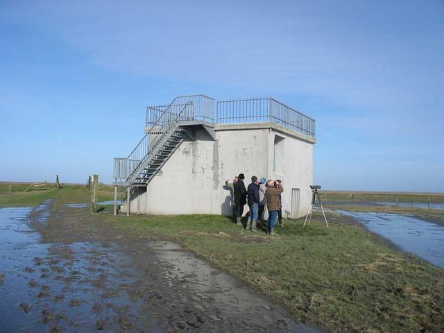 's Winters is dit een goede plek om ganzen en slechtvalken te zien. U kijkt uit over het gebied vanaf een oude bunker.