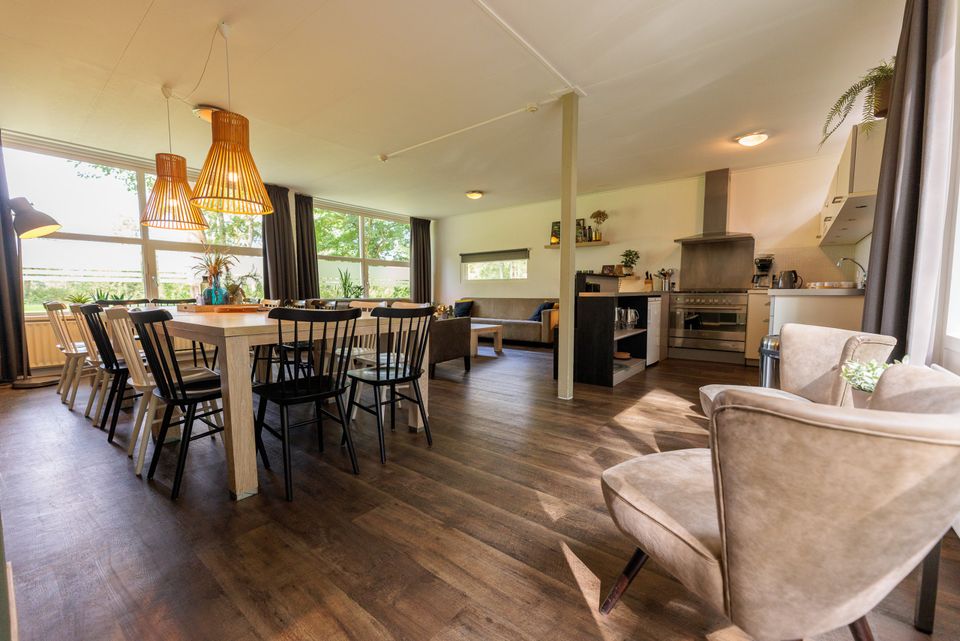 Deze groepsaccommodatie is prachtig gelegen middenin de natuur aan een klein vennetje. De accommodatie is volledig op de begane grond gelegen en bestaat uit een lange gang waaraan de acht slaapkamers gelegen zijn. Elke slaapkamer heeft een eigen badkamer met douche, toilet en wastafel. Een van de slaapkamers is ingericht voor gebruik door mindervalide personen. Daarnaast beschikt iedere slaapkamer over een bureautje en televisie. Aan het einde van de hal is de ruime living met woon- en eetkamer en volledig uitgeruste keuken met onder andere een oven, vaatwasser en koelkast. Bij de woonkamer is een ruim terras met gezellige zitjes.
