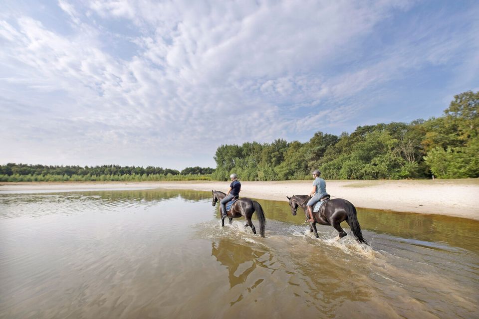 Het Nationaal Park Drents-Friese Wold is een van de grootste en mooiste natuurgebieden van Nederland. Ruim 6.000 hectare bos, heide, stuifzand en beekdalgraslanden nodigen uit voor lange tochten te paard. Hier rijd je over goed onderhouden ruiterpaden, langs begrazingsgebieden waar koeien en schapen vrij rondlopen – rustig aan doen is het devies. Gebruik de zwarte verbindingspaden om routes te verkorten of te combineren en ontdek steeds weer nieuwe vergezichten, stille plekjes en karakteristieke dorpjes.