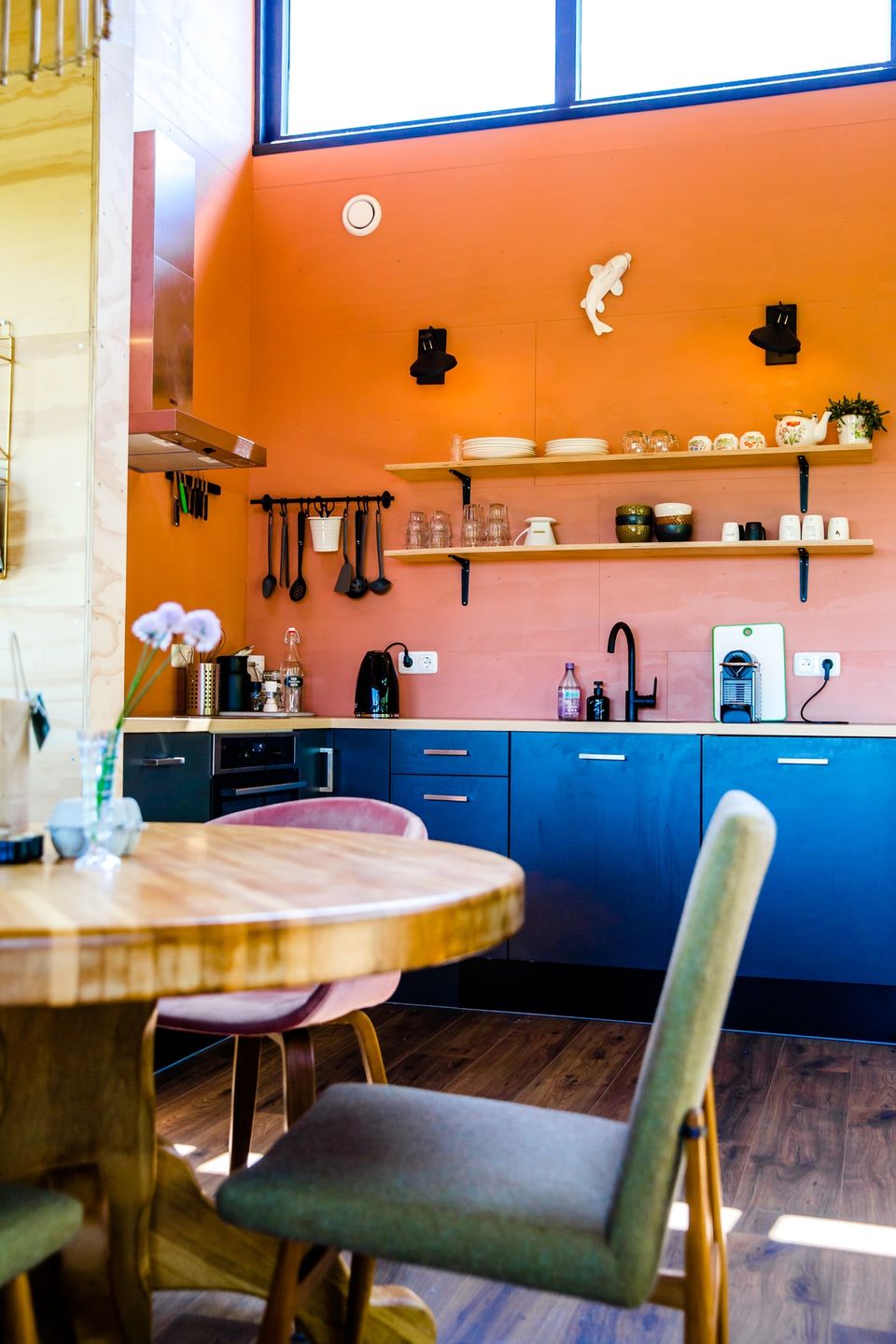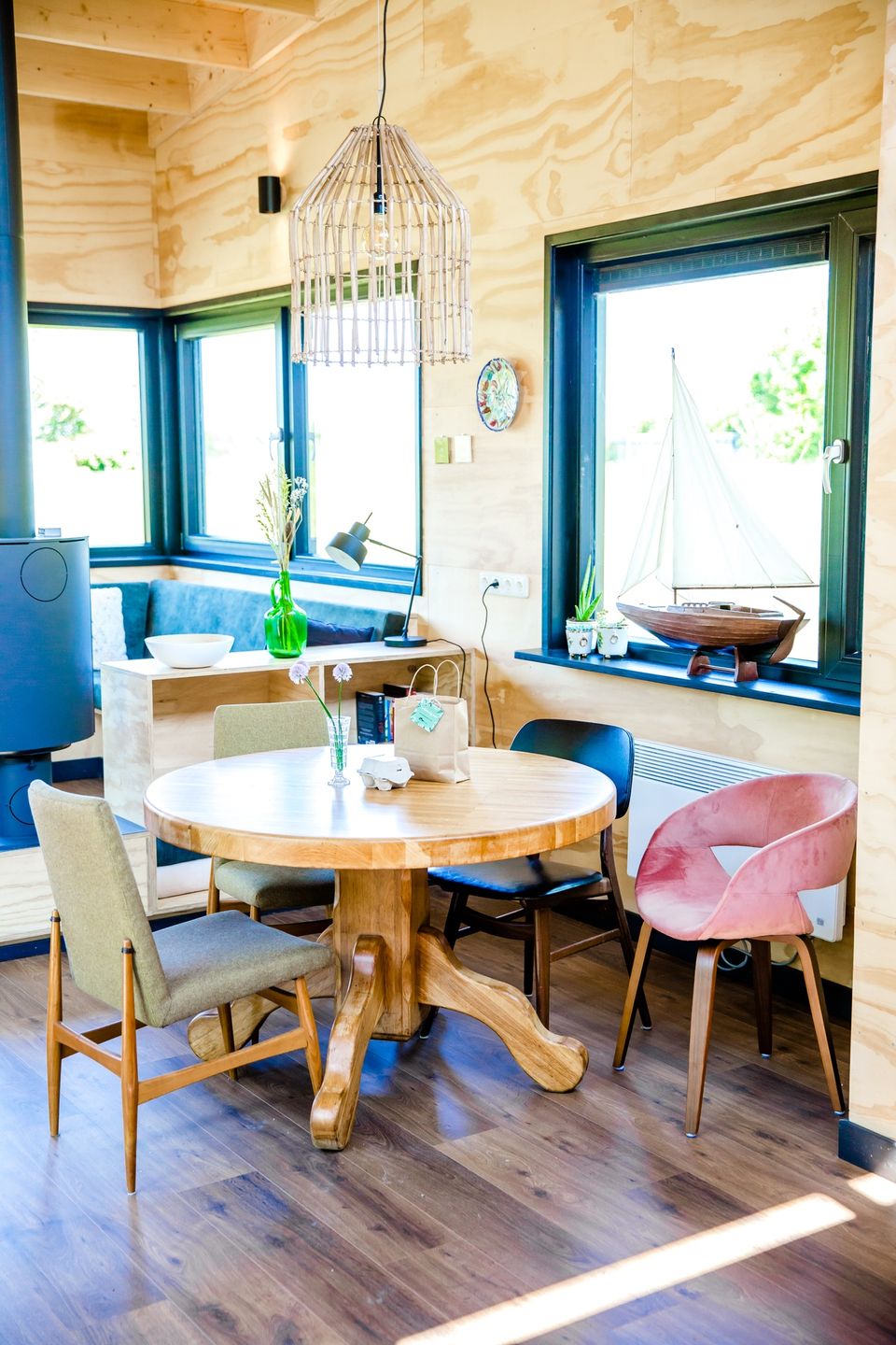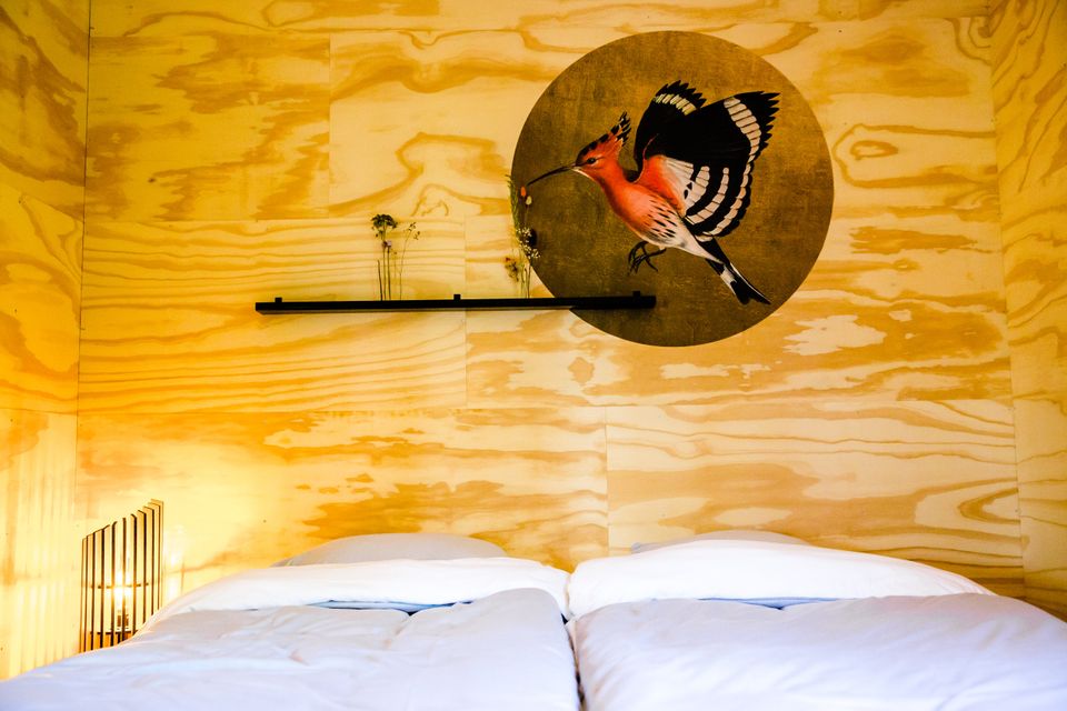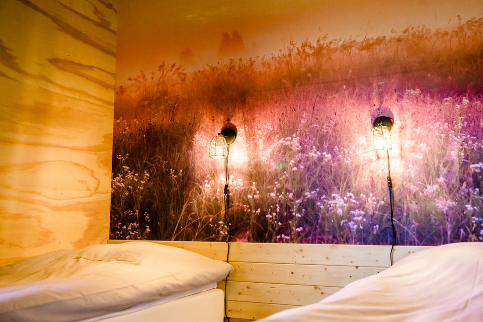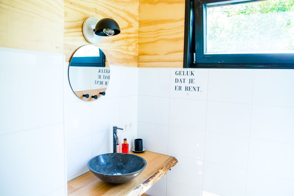 Via de veranda kom je binnen in dit huisje. Doordat de leefruimte verhoogd is kun je mooi over de landerijen heen kijken. In het huisje staat een ronde eettafel en via de eetruimte kom je bij de keuken. De keuken is voorzien van een magnetron, oven, koelkast, koffiezetapparaat en een waterkoker. Het huisje beschikt over twee slaapkamers met elk twee eenpersoonsbedden, deze bedden kunnen eventueel tegen elkaar geschoven worden. De bedden zijn voorzien van een eenpersoonsdekbed met kussen en een beschermhoes. De badkamer heeft een douche en een dubbele wastafel, het toilet is apart. Tevens is er een mooie ruime veranda waar je in de zomer heerlijk buiten kunt zitten.