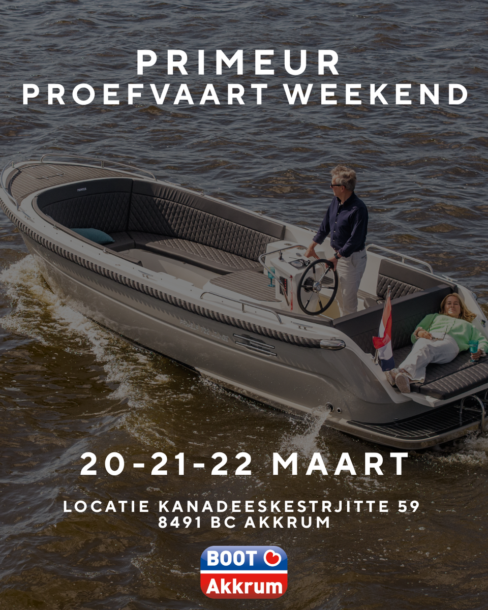 Altijd al eens in een Primeur sloep willen varen? Tijdens dit weekend kunt u verschillende modellen van Primeur zelf ervaren. De Primeur sloepen liggen klaar in het water aan de kade van Kanadeeskestrjitte 59 - Loswal (naast Grandcafe Goerres).