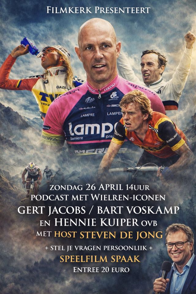 Hier vind je Podcast wielreniconen Gert Jakobs, Steven Rooks (ovb), live koers en Spaak de film