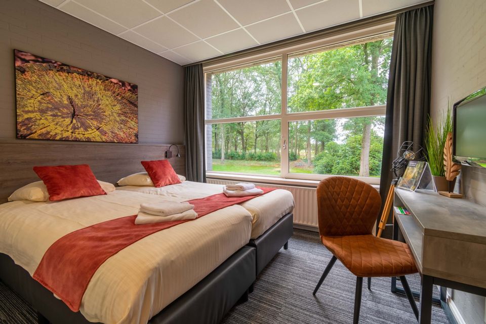 Accommodatie de Eekhoorn is een ruime groepsaccommodatie die plek biedt aan 28 personen. Vanuit de woning en het terras rondom de ruime living heb je een prachtig uitzicht over de heide van Allardsoog. De woning heeft een ruime living met gezellige woon- en eetruimte. In de woonruimte staan meerdere banken en er is een knusse houtkachel. De eetruimte is ruim opgezet met voldoende zitplaats voor iedereen. De keuken beschikt over een groot zespits-gasfornuis en een oven, evenals een vaatwasser en grote koelkast. Er zijn 14 slaapkamers die elk beschikken over een eigen badkamer. Deze badkamer heeft een douche, toilet en wastafel. De slaapkamers bestaan allen uit twee eenpersoons-boxspringbedden, een bureautje en eigen televisie.