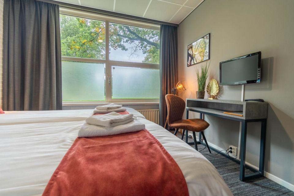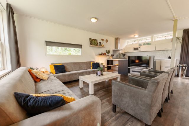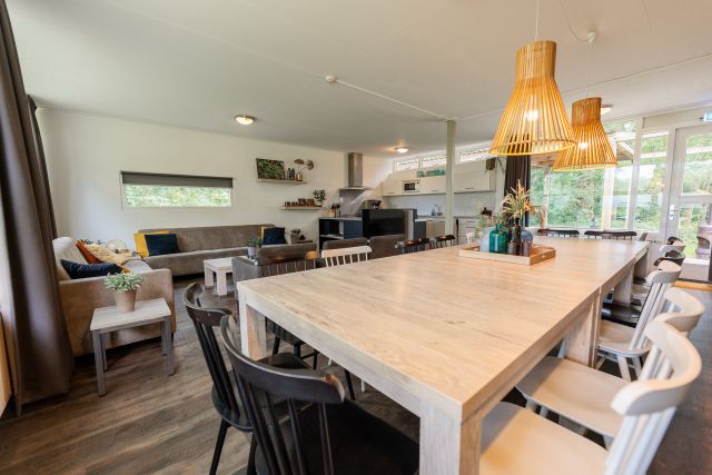 Deze groepsaccommodatie is prachtig gelegen middenin de natuur aan een klein vennetje. De accommodatie is volledig op de begane grond gelegen en bestaat uit een lange gang waaraan de acht slaapkamers gelegen zijn. Elke slaapkamer heeft een eigen badkamer met douche, toilet en wastafel. Een van de slaapkamers is ingericht voor gebruik door mindervalide personen. Daarnaast beschikt iedere slaapkamer over een bureautje en televisie. Aan het einde van de hal is de ruime living met woon- en eetkamer en volledig uitgeruste keuken met onder andere een oven, vaatwasser en koelkast. Bij de woonkamer is een ruim terras met gezellige zitjes.