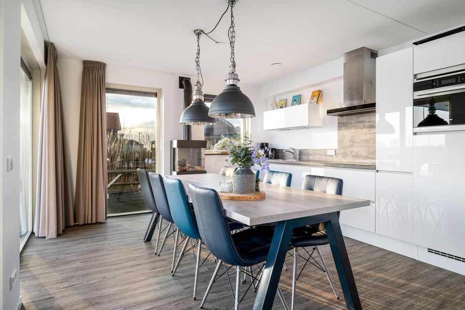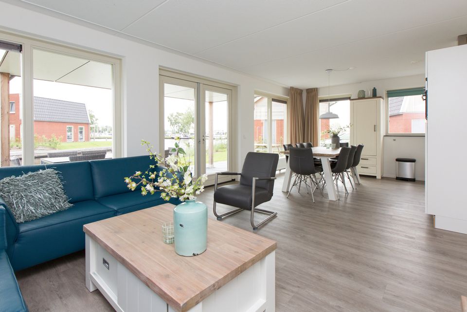 Zeer comfortabele 8 persoons vakantiewoning aan het water met drie of vier slaapkamers op de bovenverdieping.