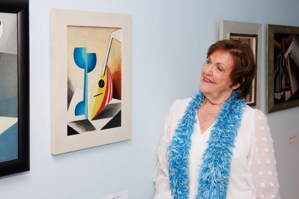 “Nee, ik kom eigenlijk heel weinig in een museum. Vroeger dacht ik altijd dat ik het daar veel te druk voor had. En tegenwoordig ben ik het liefste thuis, ik kom eigenlijk nergens meer. Jullie hebben me nu meegenomen naar het museum met al die achten in de naam, Museum Dr8888. Het museum in het oude klooster voor mannenbroeders in het midden van Drachten, vlak bij de Lawei. Daar heb ik vaak opgetreden. Wat hier hangt en staat, vind ik eigenlijk wel hartstikke mooi hoor. Leuk. Misschien moet ik toch eens vaker naar een museum”.