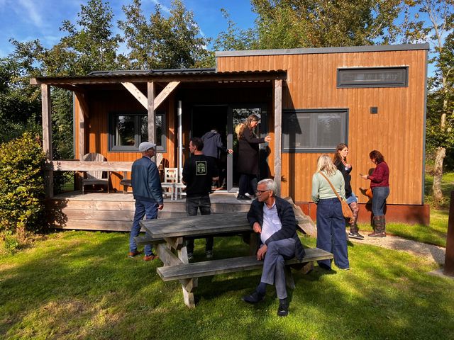 Tijdens de lunch stopten we bij het nieuwe Buitencentrum Drents-Friese Wold in Appelscha. Hier vertelde de boswachter over 25 jaar beheer van het Nationaal Park en kwamen de thema’s gastvrijheid, flora, fauna en recreatie uitgebreid aan bod. Vervolgens gingen we naar Boetiekpark de Kas in Scherpenzeel, waar Han en zijn team uitleg gaven over de Rottige Meente en de bijzondere overnachtingsmogelijkheden in de groene omgeving. De dag werd afgesloten in Aldeboarn bij De Deelen, waar Wietske vertelde waarom het dorp en de haven zo uniek zijn.